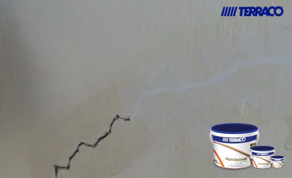 Ensure the substrate is sound. Using a putty knife, cut along the cracks in a V shape. The maximum openings of the cracks should be 5 mm wide x 3 mm deep. Remove all the dust, dirt, foreign matter, plaster debris, etc. from the surface completely. Apply a diluted coat of Terraco Terrabond A (1:5 with water) to the opened crack by brush.
