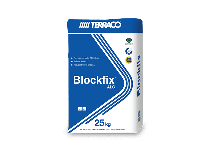 Apply the BlockfixTM ALC to the ALC surface using a mortar applicator or notched trowel to approx. 3 mm thickness. Place the blocks into the mortar ensuring good contact. Check the level and continue with next block. Remove excess material with a wet sponge before setting.