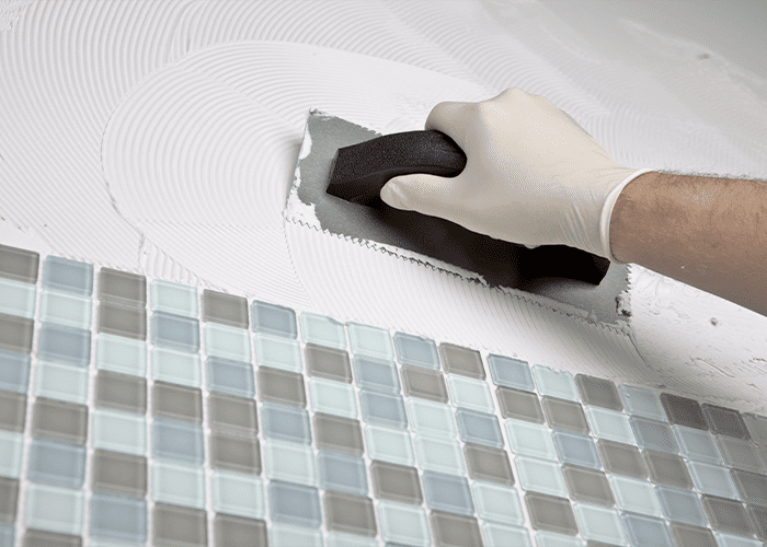 Remove excess adhesive from the face of the tile with a wet sponge before the adhesive dries.