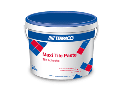 Maxi Tile Paste is an economical, high quality, all-purpose acrylic adhesive for tiles and clinkers. It is ideally suited for use on exterior and interior surfaces of concrete, plasterboard, etc.