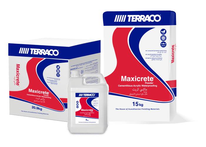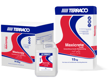 Maxicrete is a two-component, polymer modified cementitious general purpose waterproof coating. Maxicrete is especially recommended for waterproofing concrete and masonry substrates such as bathrooms, kitchens, balconies, terraces, patios, and planter boxes.