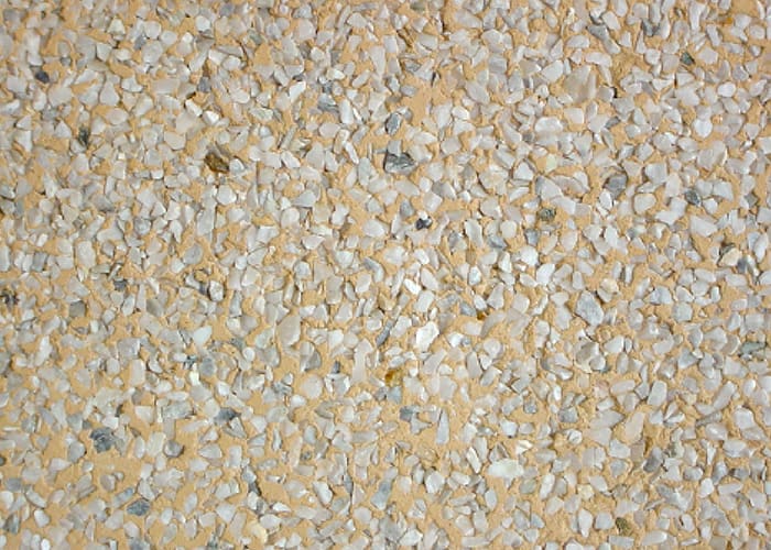 • The basecoat is trowel applied and finished by spraying or manually casting the marble chips over the entire surface and embedding them into the surface with a steel trowel or hairless roller.