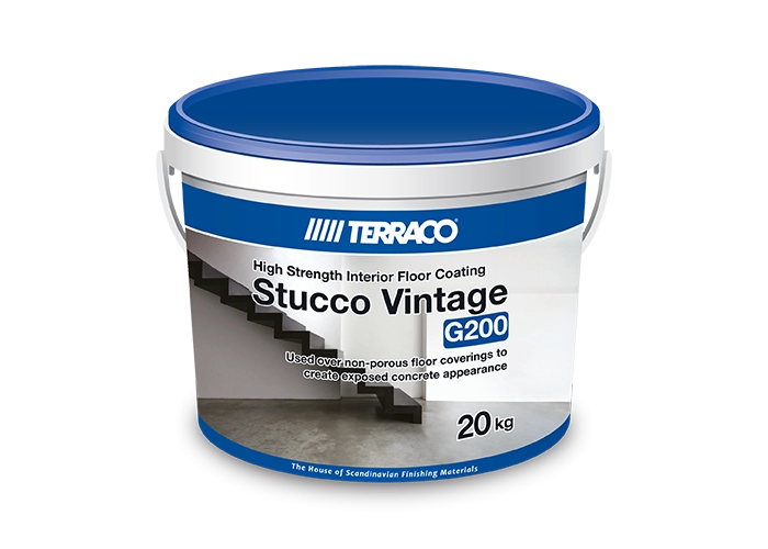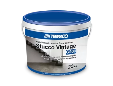Stucco Vintage G200 is a decorative mineral floor finish designed to give the appearance of a natural cast concrete floor. It is easy to apply and has excellent strength, abrasion resistance and durability.