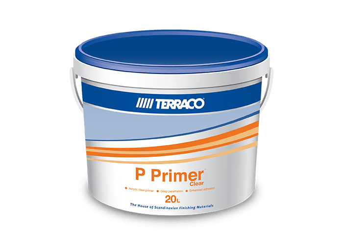 P Primer Clear is a clear coloured, highly developed, liquid primer, that is absorbed deeply into the substrate of cementitious materials, plasters and limes. It binds the substrate and the surface, to give a solid base for decorative finishing coats, such as TERRACO Textured Coatings, paints and thin-layer mortars.