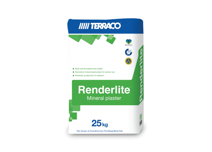 A traditional looking product using modern mineral render technology, Renderlite is a coloured mineral plaster which acts as a basecoat for pebble-dash rendering.