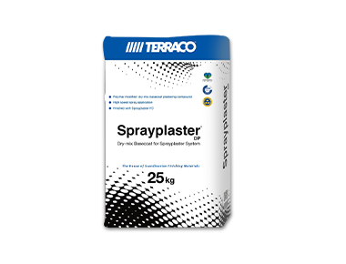 Sprayplaster DP Basecoat هو عبارة عن جص أسمنتي قابل للرش معزز بالبوليمر ويستخدم كطبقة أساسية من الجص لنظام Terraco Sprayplaster.