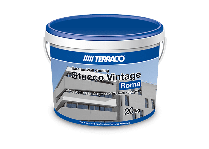 Stucco Vintage Roma is a decorative wall finish designed to give the appearance of a natural cast concrete wall. It is easy to apply and has excellent vintage effects. With Stucco Vintage Roma a range of attractive patterns can be achieved, depending on application methods. Stucco Vintage Roma has a dual textured colour, good workability and durability. The product is designed for exterior application.