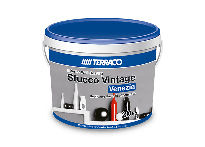 Stucco Vintage Venezia is an acrylic based interior decorative coating for walls for use on most interior surfaces. Stucco Vintage Venezia achieves the appearance of natural cast concrete. Stucco Vintage Venezia can be applied to produce both traditional and modern effects by adjusting the application methods. The product is designed for interior application.