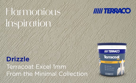 باستخدام الرولة، ضع طبقة واحدة من أساس Terraco P Primer Textured واتركها حتى تجف. ضع Terraco Terracoat Excel / Terracoat Sil Excel (اختر خيار الأداء المطلوب*) بسمك 1.0 مم / 1.5 مم / 2.0 مم / 3.0 مم (اختر حجم الحبيبات) على اللون والملمس وفقًا للعينة المعمارية المعتمدة.