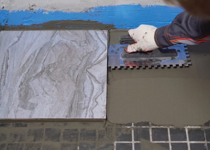 ضع Terrafix W11 بطبقة بسمك 3 مم تقريبًا على السطح باستخدام الجانب الأملس من مجرفة مسننة. اسحب المجرفة عبر الطبقة المطبقة باستخدام الحافة المسننة. ادفع البلاط في مكانه لضمان التصاقه التام. ثبّت البلاط قبل أن يجف اللاصق تمامًا.