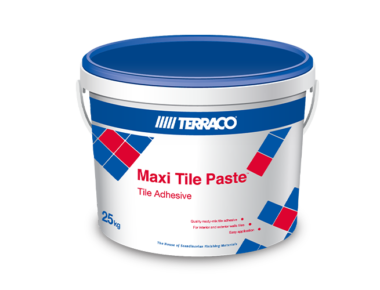 Maxi Tile Paste is an economical, high quality, all-purpose acrylic adhesive for tiles and clinkers. It is ideally suited for use on exterior and interior surfaces of concrete, plasterboard, etc.