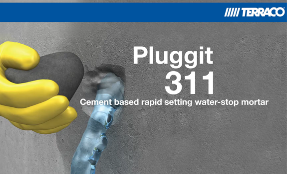 One-component rapid setting repair mortar which is used to stop water leakages in concrete and masonry. Terraco Pluggit 311 is shrinkage compensated and hence creates a watertight repair even under constant water pressure.