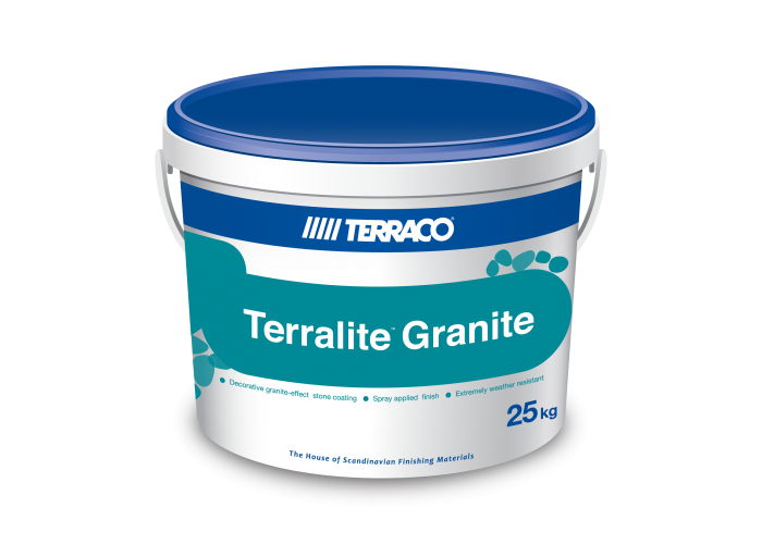 Granite has remained one of the most popular building materials throughout the ages and is synonymous with luxury and fine living. Similarly Terralite Granite is a granite effect exterior coating creating an aesthetically pleasing finish that is very hard wearing. Based on unique pure acrylic polymers, mineral aggregates, and incorporating larger flecks to replicate natural granite, this product is exceptionally popular for use on buildings where the podium uses real granite, but the higher elevations are coated with Terralite Granite to complement the podium level.