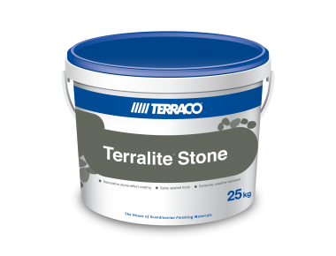 A medium build spray applied stone effect coating suitable for general masonry and Terraco EIFS.