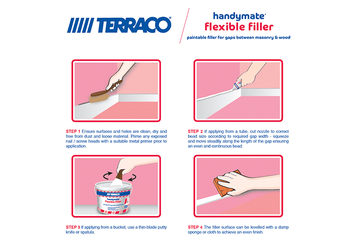 Handymate Flexible Filler is a high-performance, ready-to-use product designed for application between wood and masonry where a permanently flexible joint is required. It is suitable for interior and exterior use as well as bathrooms and kitchens.