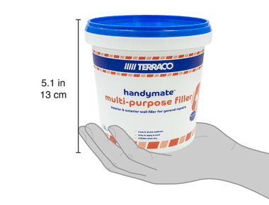 Handymate Multi-Purpose Filler will surface dry in 2-4 hours depending on thickness and temperature. Ideal for repair of masonry, brick, concrete, plaster and plasterboard. Suitable for interior and exterior repairs of up to 10mm in thickness. Drillable when fully dry.