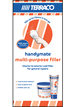 Handymate Multi-purpose filler is a ready-to-use, lightweight filler for interior and exterior use. The product has excellent adhesion to most common substrates and is crack and shrink resistant.
