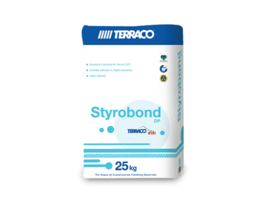 Styrobond DP is a basecoat and adhesive for the Terraco EIFS Exterior Insulation Finishing System. It is easy to use by just adding water, improving on-site quality control. It shows excellent adhesion between substrate and expanded polystyrene boards when used as an adhesive. It also provides an excellent basecoat for embedding glass fibre mesh on top of which EIFS finishing coat is applied.