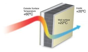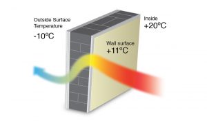 | No thermal insulation leads to a cooler internal wall surface. | Thermal insulation results in a warmer internal wall surface. |